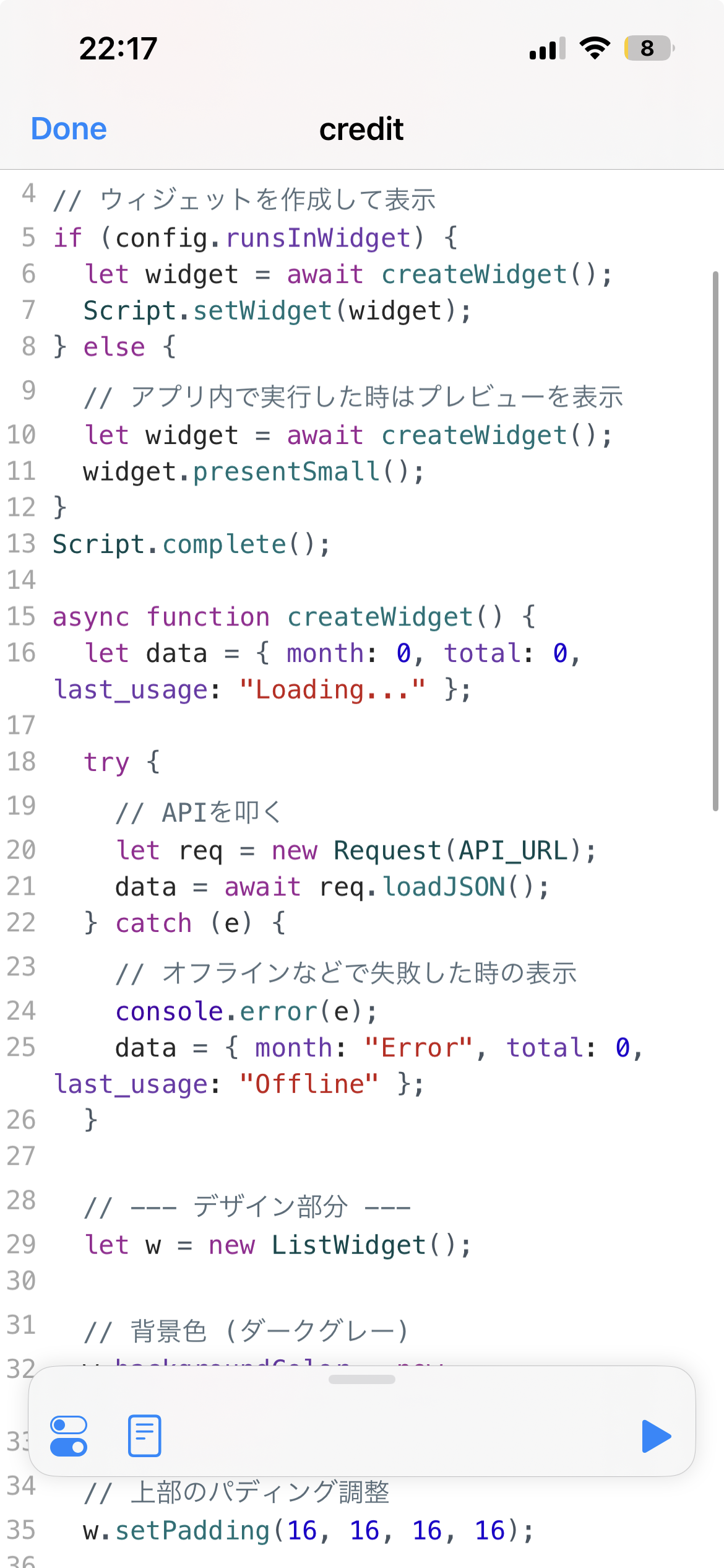 以上のようにiPhoneでぽちぽちスクリプトを書く羽目になりますが、これは書きにくいのでパソコンで一度書き起こしてiPhoneにコピペするようにしました。